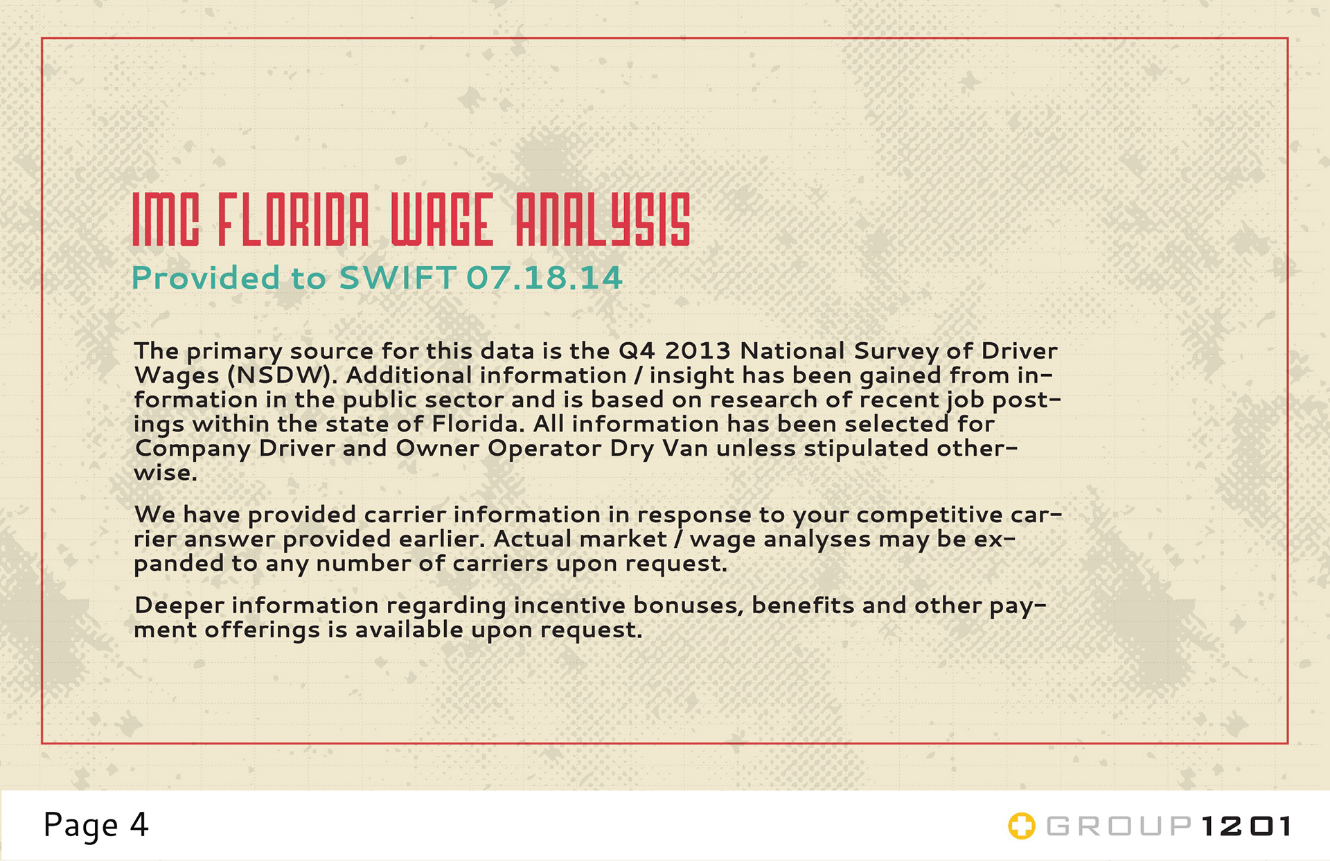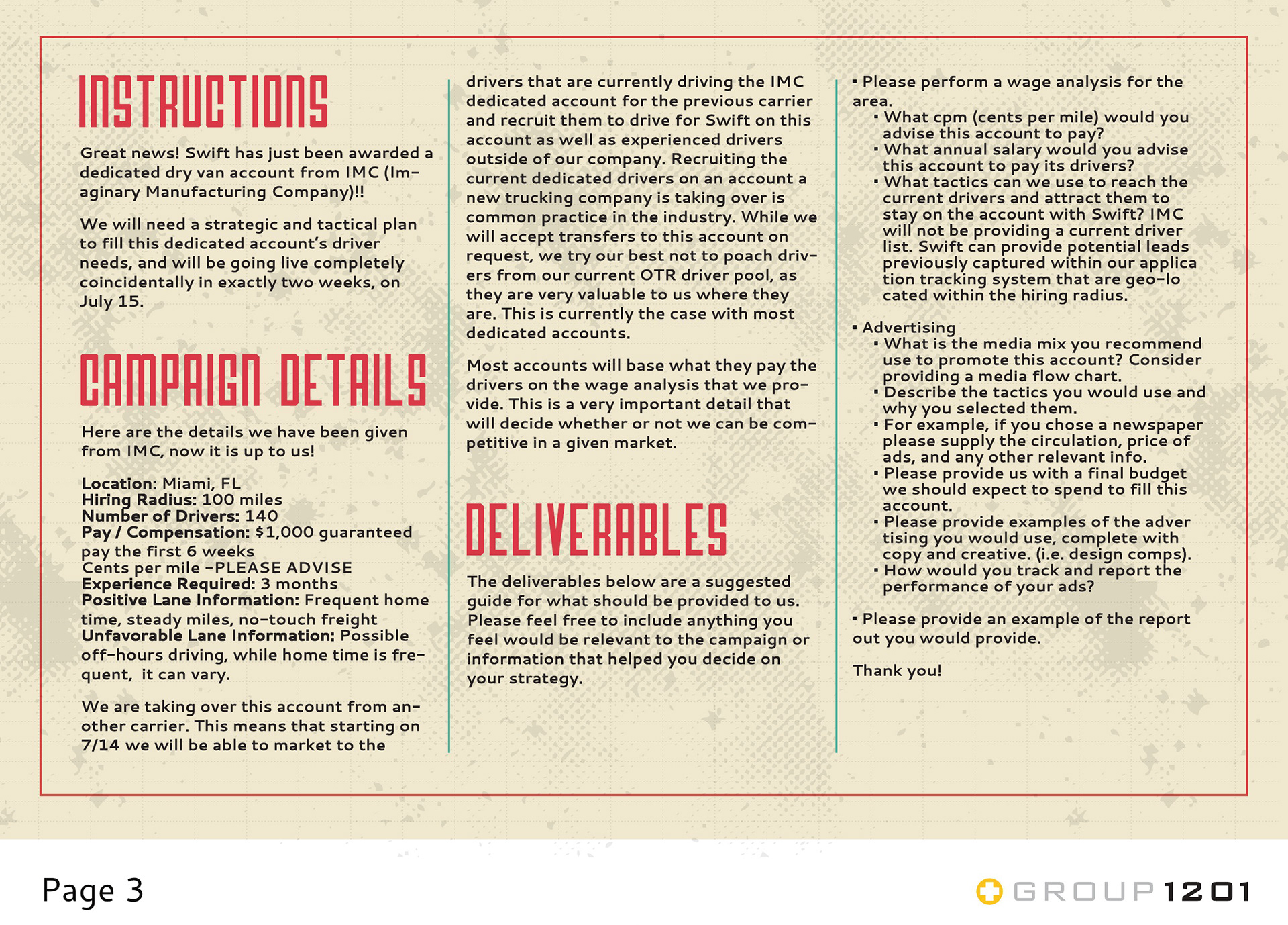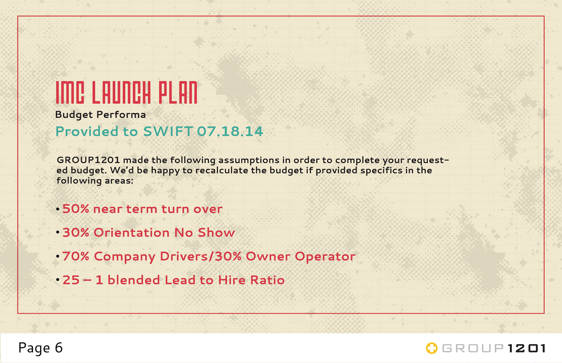GROUP1201 owns all rights to this content. I do not own any part of it. This is a Launch Plan for Swift Transportation. Group1201 proposed this in order to hopefully gain them as a client.